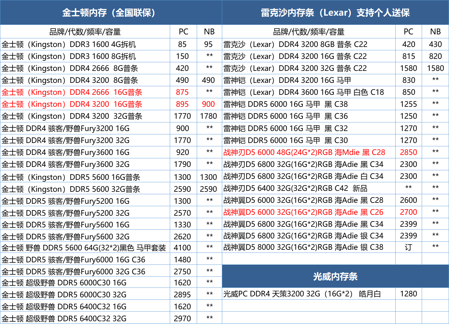 (以下价格为当天实时拿货价,仅当天有效,可提供一条龙装机服务)