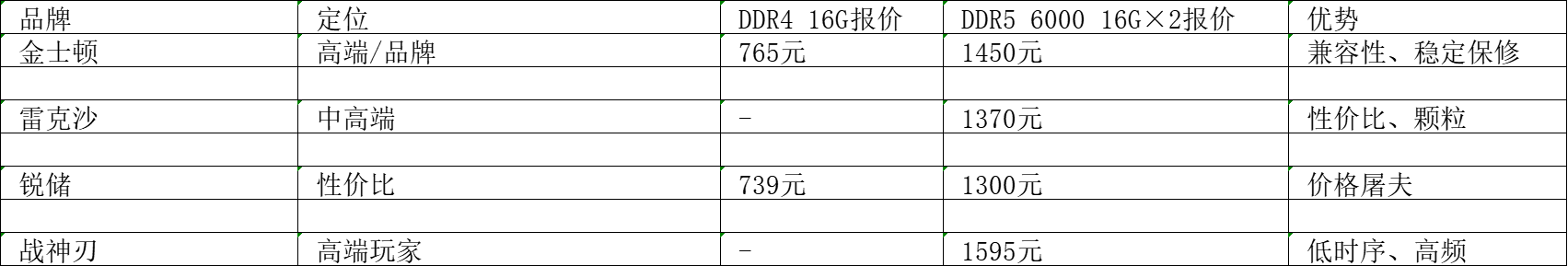 国产品牌定价激进:雷克沙、雷神铠、战神刃等品牌的DDR5产品性价比突出,正在快速蚕食传统品牌的市场份额。