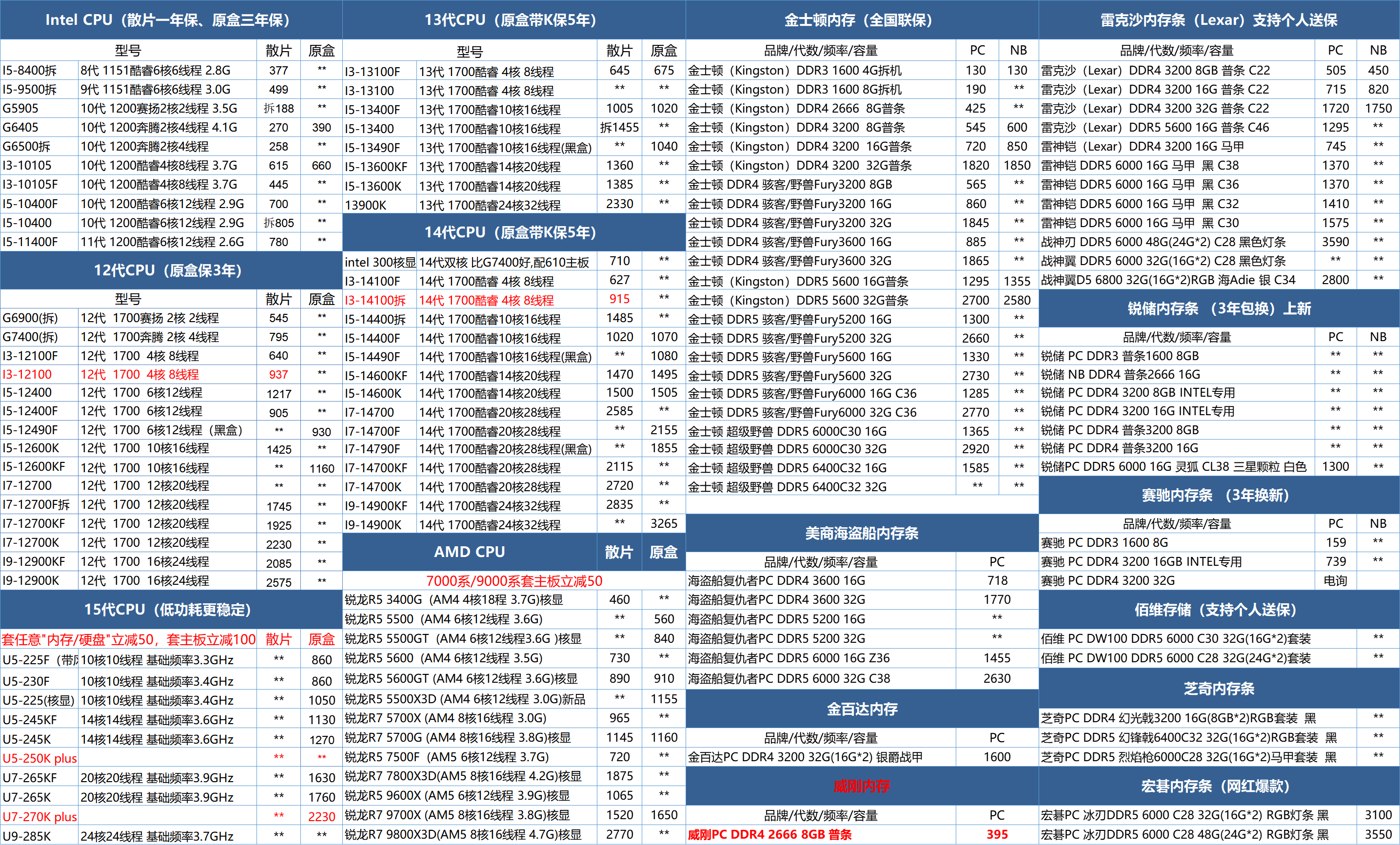 - 4月份可能有新品发布,关注Intel 15代和AMD 9000系价格走势