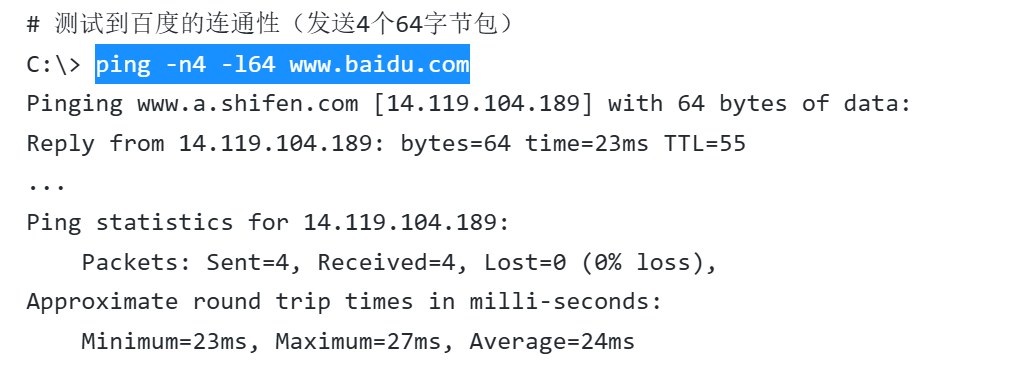 - 持续Ping监测并保存日志到文本:ping -t 8.8.8.8 > ping_log.txt