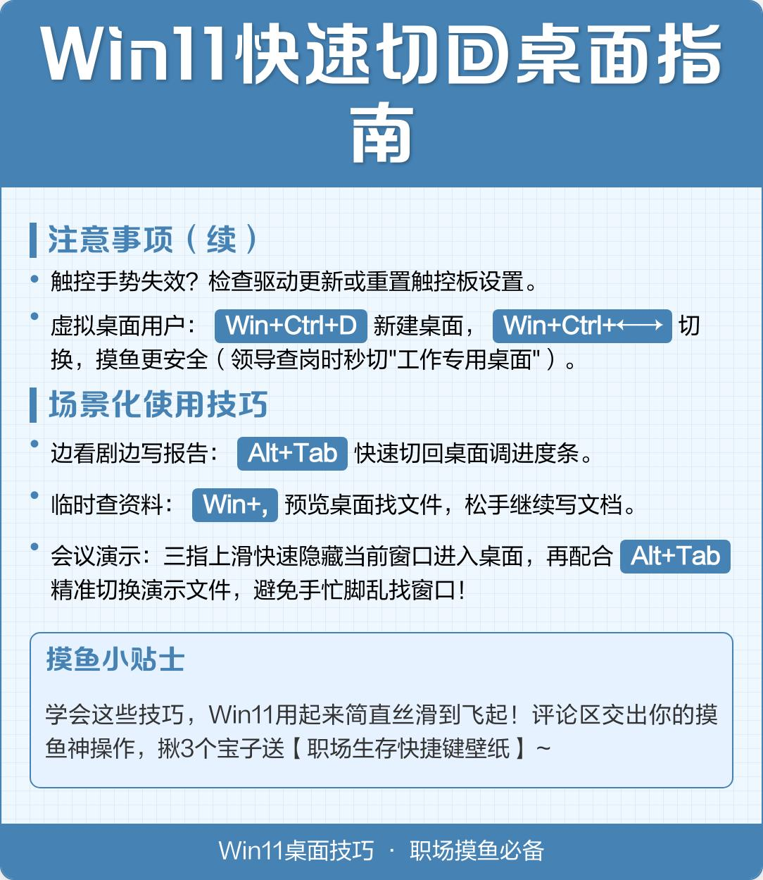 分享Win11快速切回桌面技巧,摸鱼办公两不误: