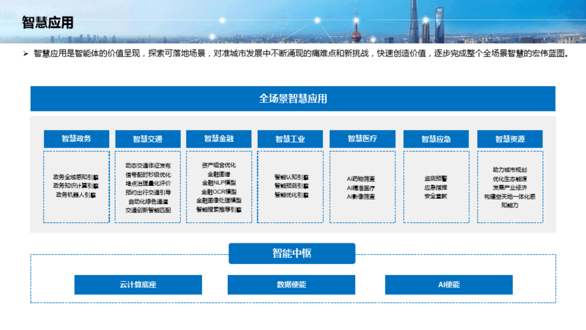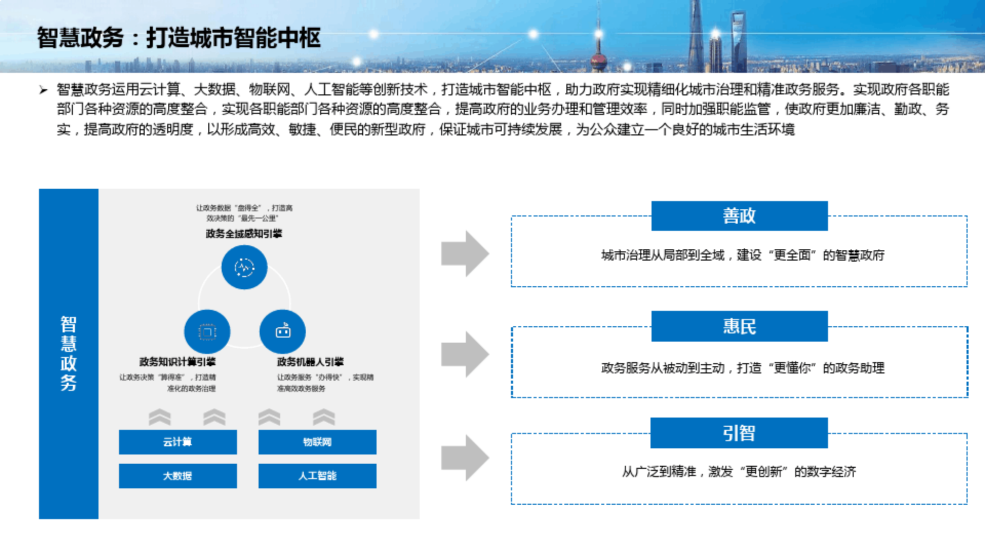 提供各个行业、部门的解决方案,与城市运营管理中心协同治理城市
