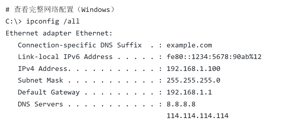 | 功能 | Windows (ipconfig) | Linux (ifconfig) |