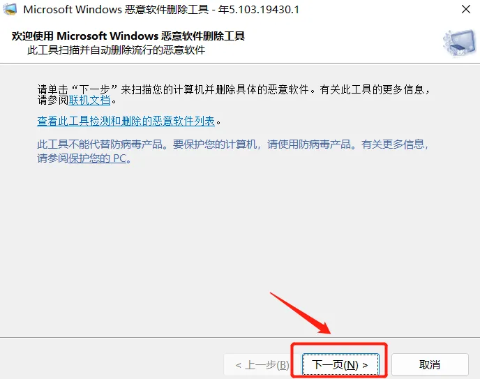2、选择【下一页】选择【快速扫描】(任意三个选一其实也行,根据自己需要),然后选择【下一页】,等待系统扫描完毕,找到流氓软件删除即可。