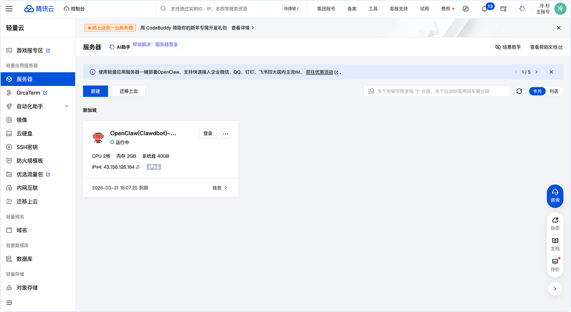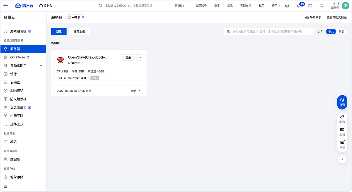 3.2、接入云厂商的OpenClaw(以腾讯云为例)