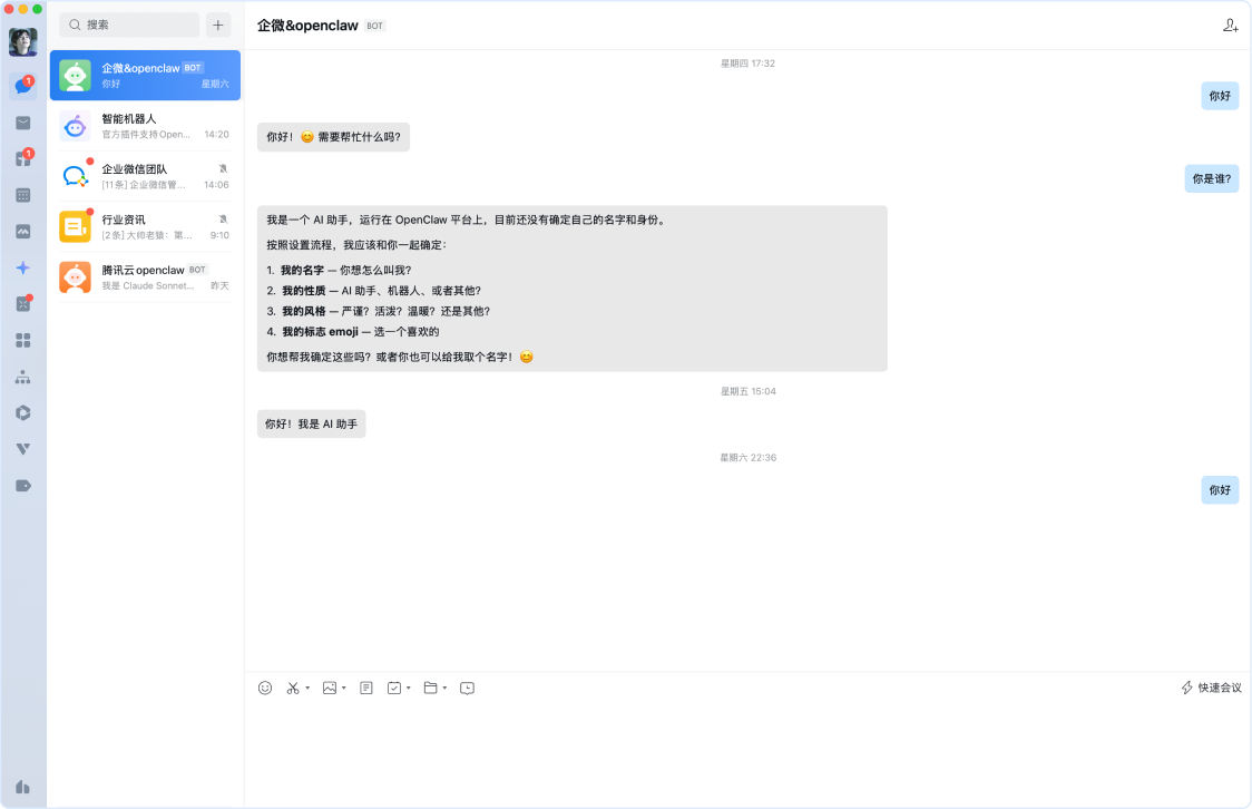 - AI助力办公提效1. 智能机器人新增官方插件,支持OpenClaw快速接入。
