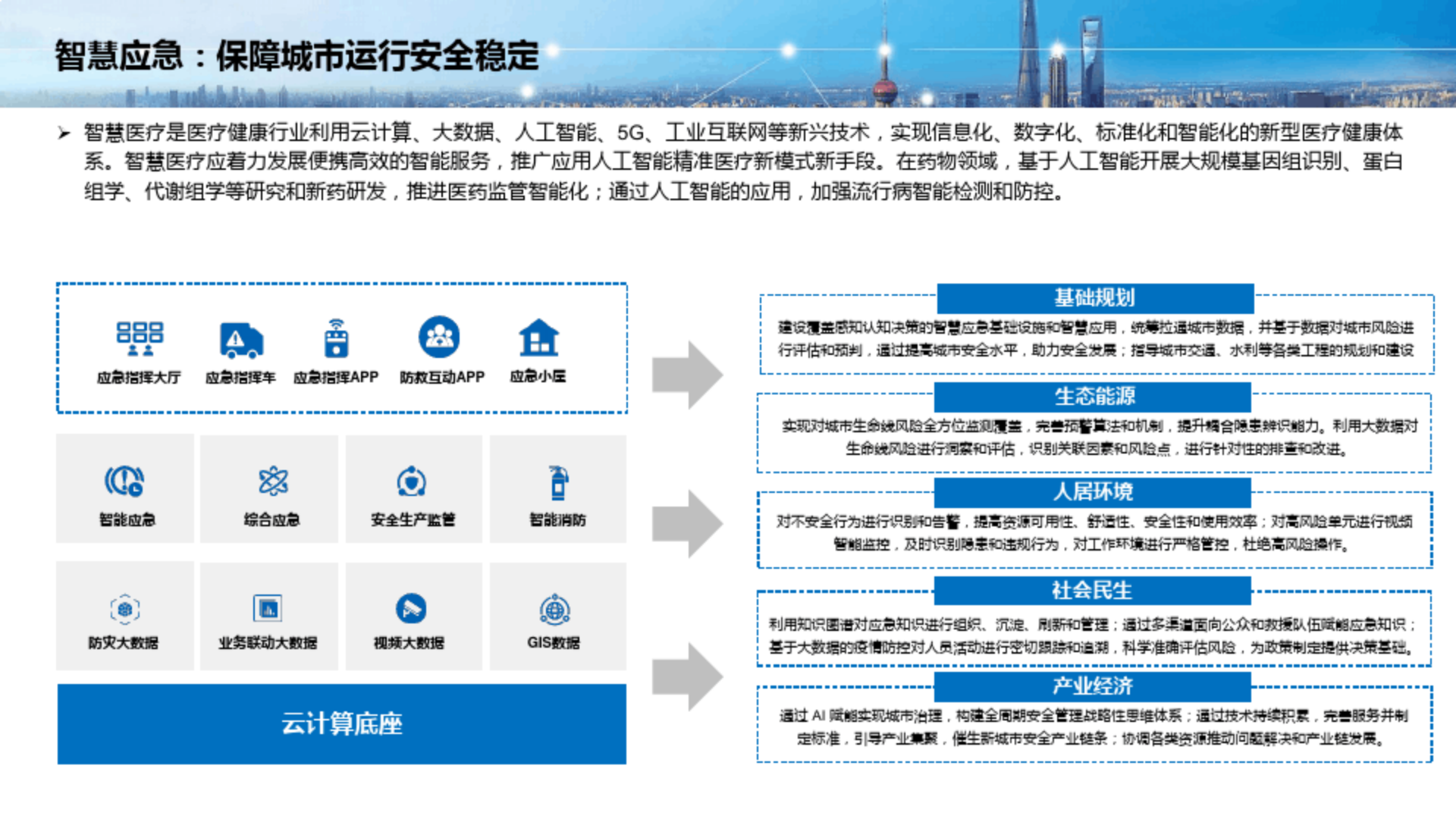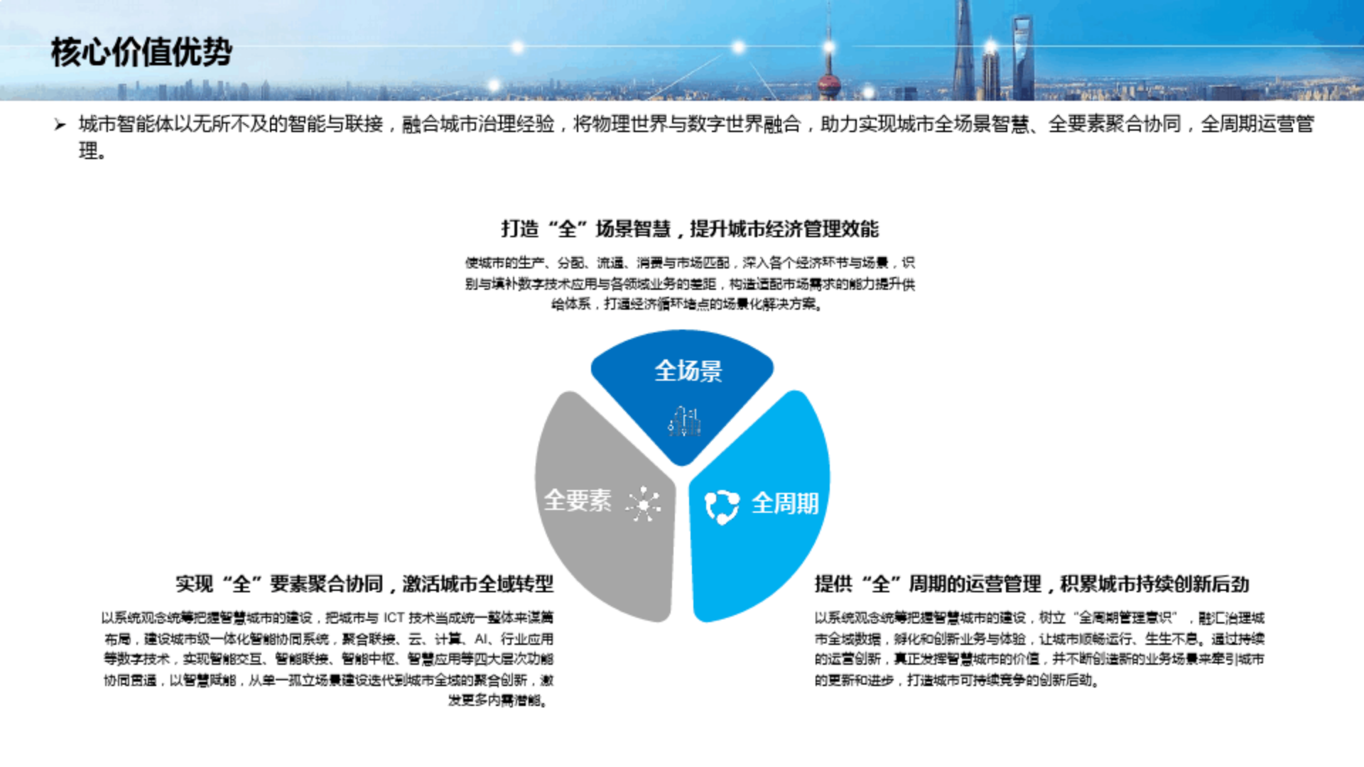 - 提供各个行业、部门的解决方案,与城市运营管理中心协同治理城市