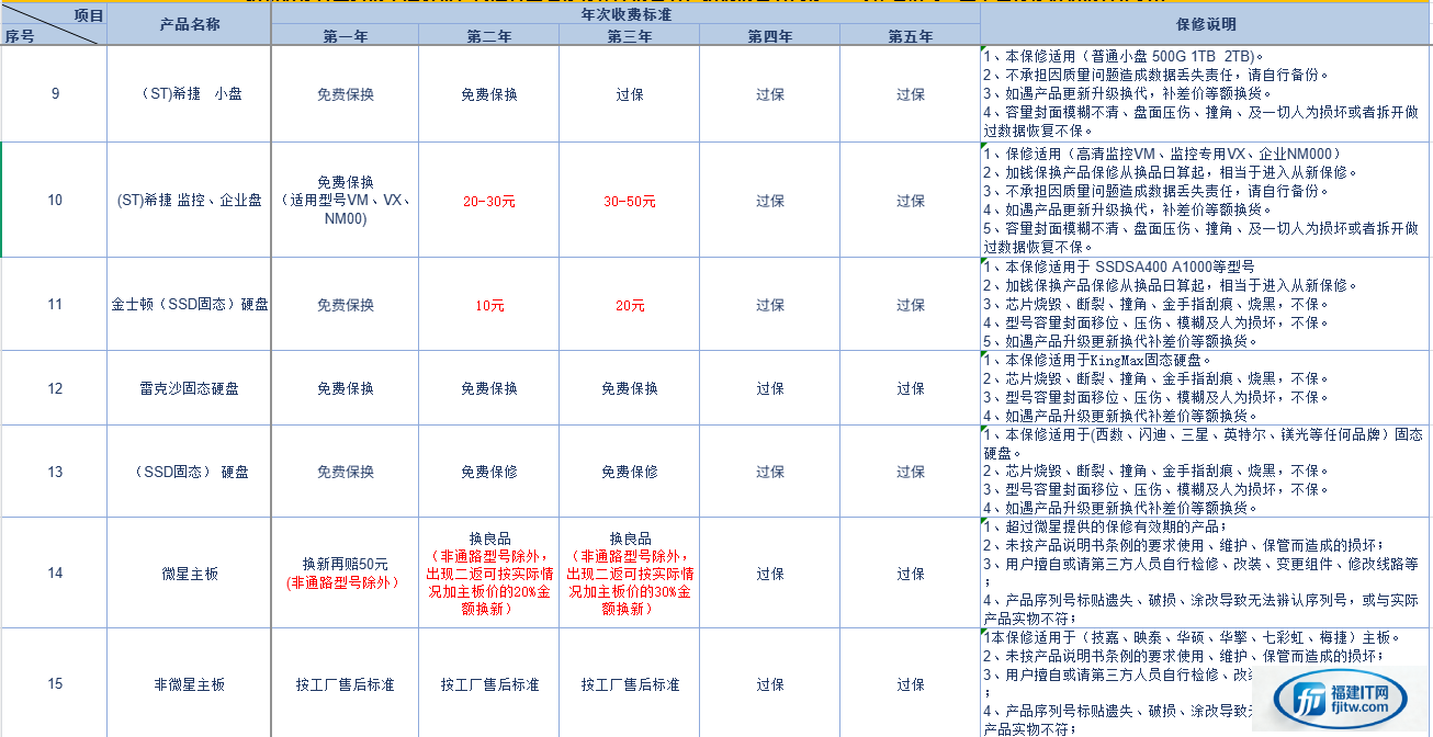 电脑配件保修条例及售后保修服务条款